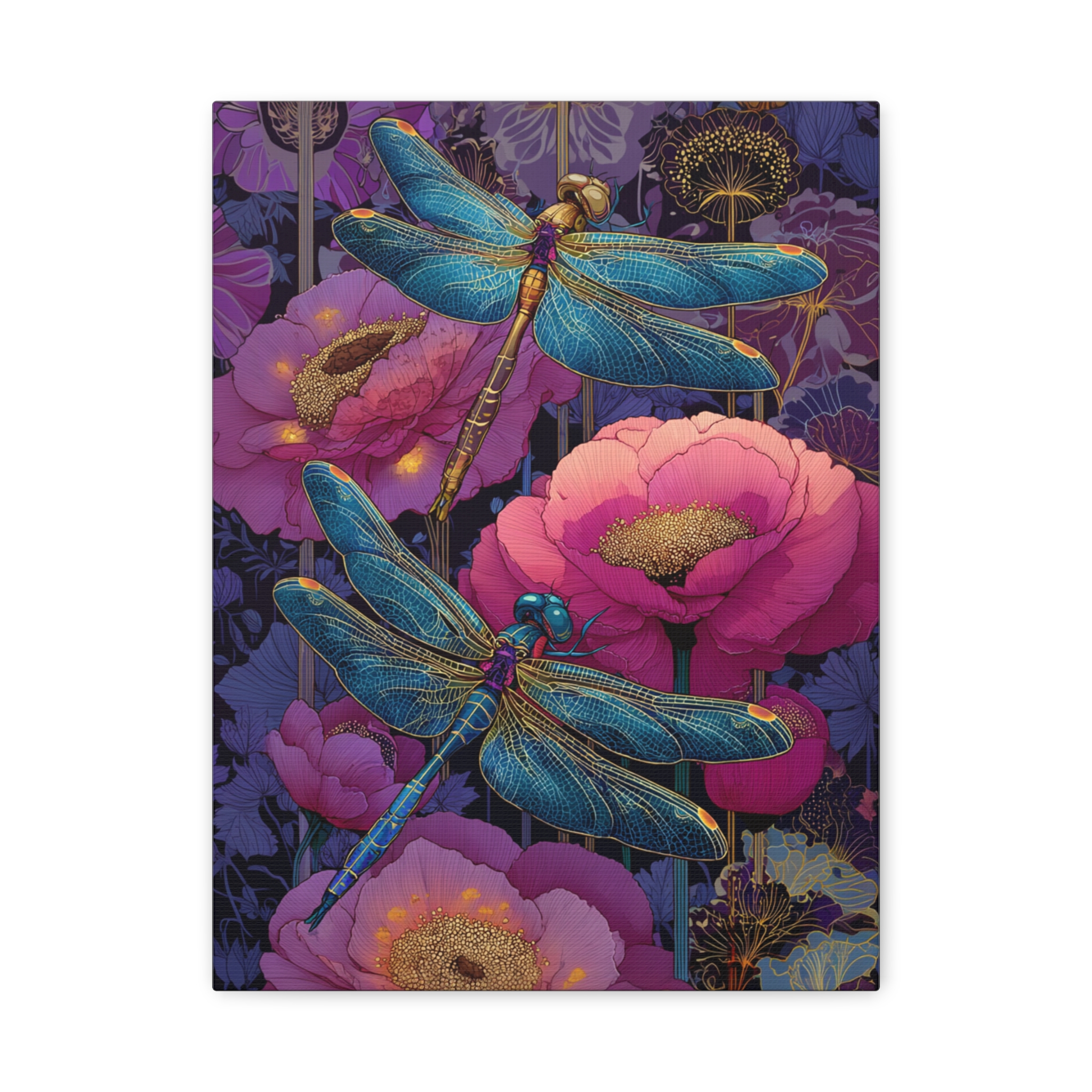 Blue-Pink Dragonflies Canvas Art Print – Available in 8 sizes