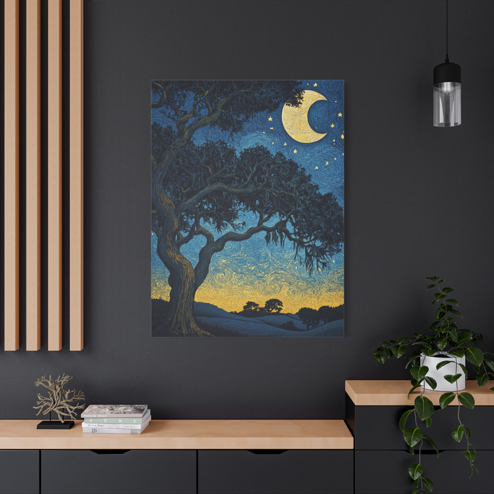 Transform your space with our stunning Canvas Wall Art, designed to bring warmth and beauty to any room. This artwork captures a serene evening scene adorned with a crescent moon and majestic trees, perfect for fostering a calming atmosphere. Ideal for those who appreciate nature’s elegance, this canvas is a wonderful addition to your home decor. Whether you’re decorating a cozy living room, a peaceful bedroom, or a creative office, this piece seamlessly fits into any setting. It makes a fantastic gift for art lovers, nature enthusiasts, or anyone looking to elevate their interior. Celebrate special occasions such as housewarmings, birthdays, or anniversaries with this thoughtful and timeless gift. Bring a touch of tranquility to your everyday life with this exquisite canvas.
